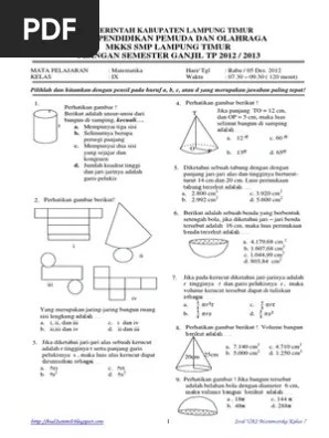 Contoh soal uts matematika kelas 7 smp semester 2 .
